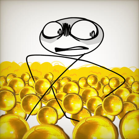you t-posed, but the piss orbs are unaffected because they're more chad than you are. they're surrounding you and piling up on each other.