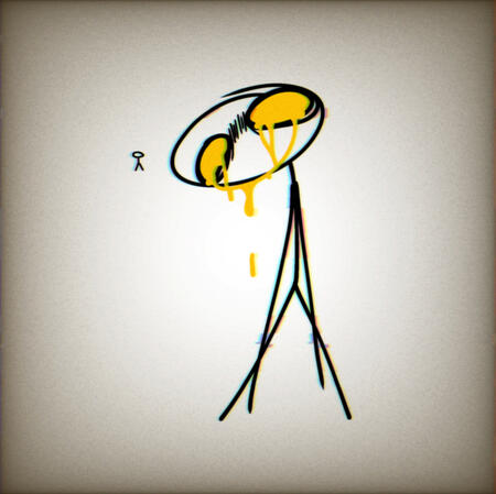 you've been wandering this endless white void for a while now. you see something small and yellow in the distance and approach it.